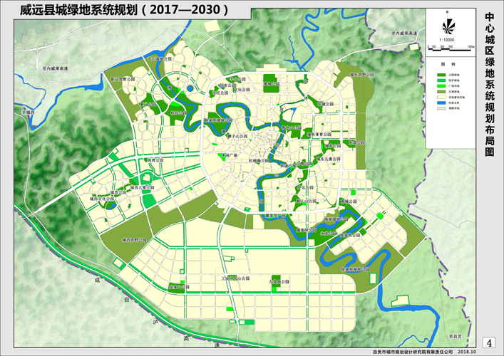 规划目标:充分依托建成的绿地成果,以绿色基础设施理论为基础,以项目建设为支撑,以创建园林城市为载体,营造具有威远特色的城市景观特色,打造“山-水-城-林-人”相依相融的空间格 局,构建城乡一体、绿网交织的大城乡绿地系统,建成生态文明,健康宜居、人与自然和谐共处、地域特色鲜明的“绿色生态宜居城市”。