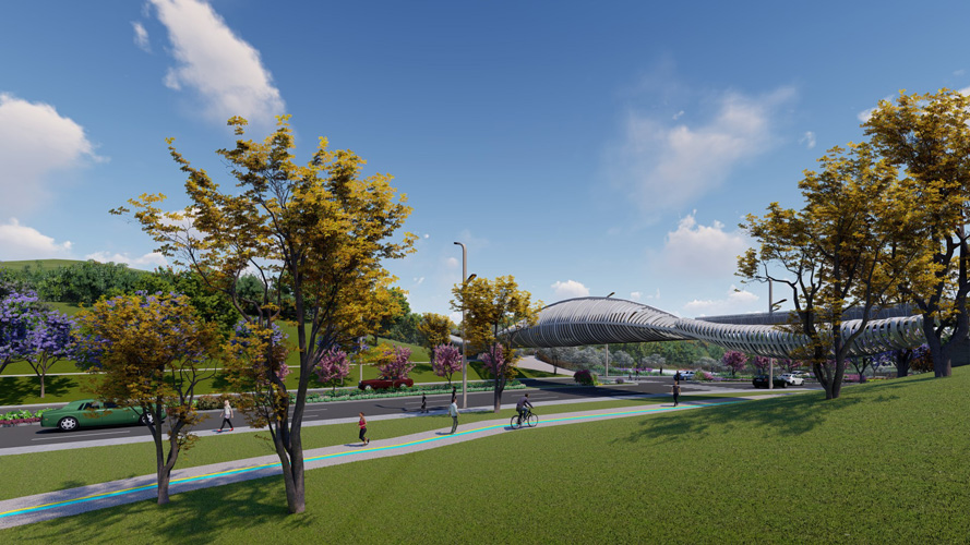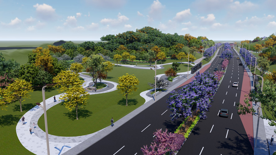 南苑街南延线道路位于自贡市卧龙湖国际旅游度假区内,道路总长800米,延续卧龙湖片区道路景观融入周边环境的设计理念,打造公园式道路景观。南苑街南延线道路北接卧龙大道,南接公园连接线,为卧龙湖片区构建公园城市网络中重要的一环。