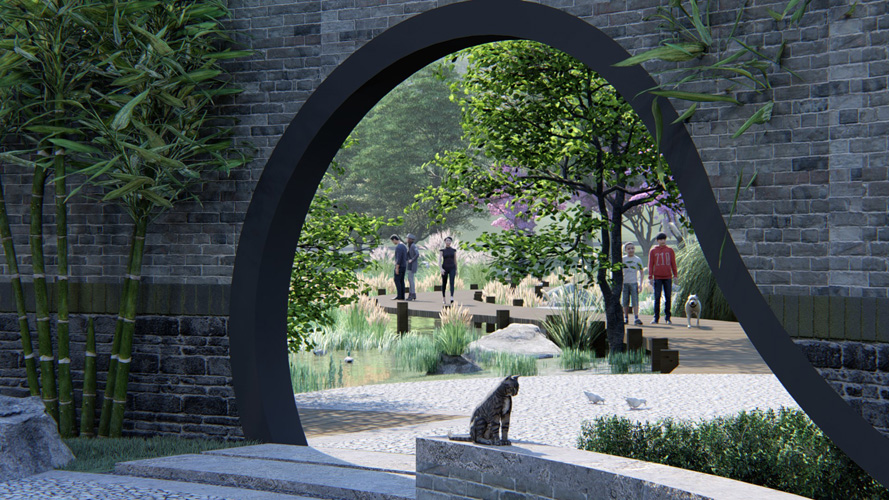 道路景观设计需区别于市内现有的城市化的景观大道,采取与自然更契合的方式对此条道路进行景观打造,使其与公园和周边绿地融为一体,弱化道路对周边绿地景观的影响。