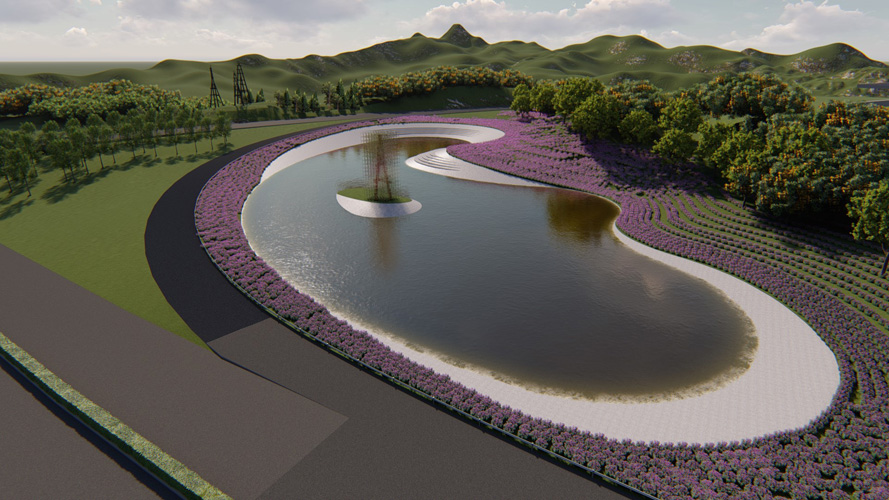 该项目为位于自贡南湖内宜高速入口匝道一侧的绿地,着力于打造一处具有自贡鲜明地域特色的入口标志景观。以纯粹、大气的手法风格打造快速通过的入口景观,以艺术的手法渲染地域文化,最终打造以盐文化为主题的城市名片。